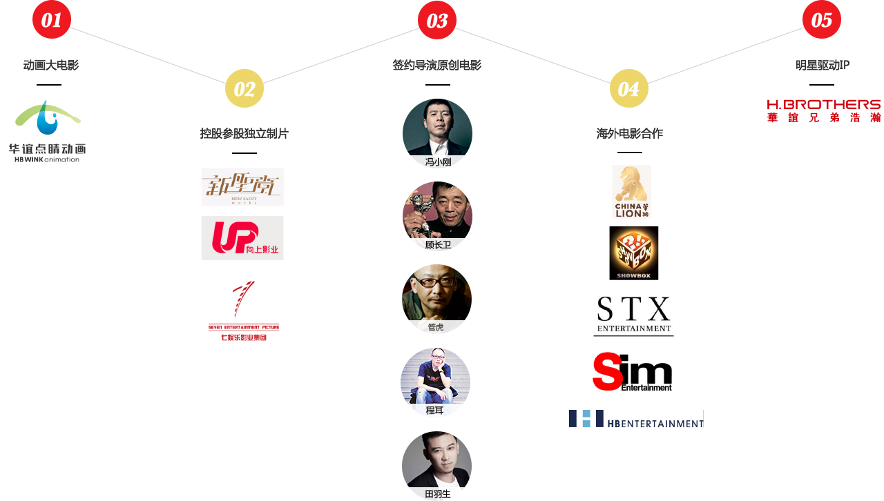 浩瀚娱乐、黄金城集团·(中国区)官方网站聚星、东阳美拉和黄金城集团·(中国区)官方网站点睛动画等;以及产量、品质都非常稳定的签约导演团队,如冯小刚、管虎、程耳和田羽生等等。